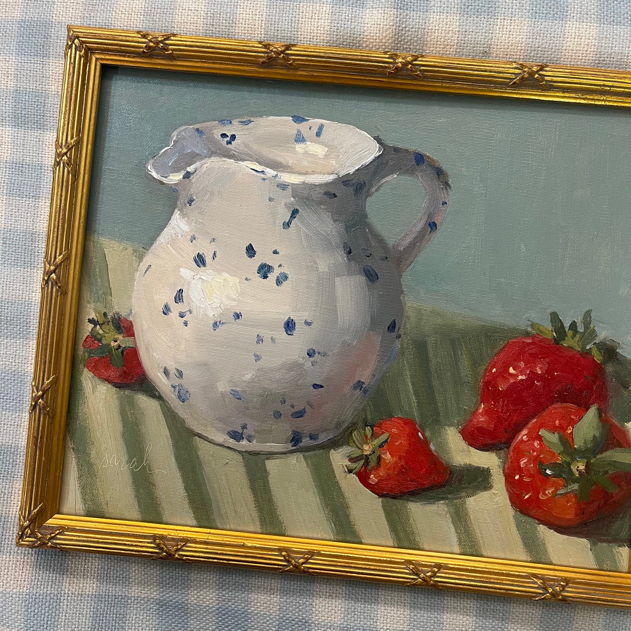 Measures 10.75 x 8.75 inches Oil on linen canvas panel including frame.