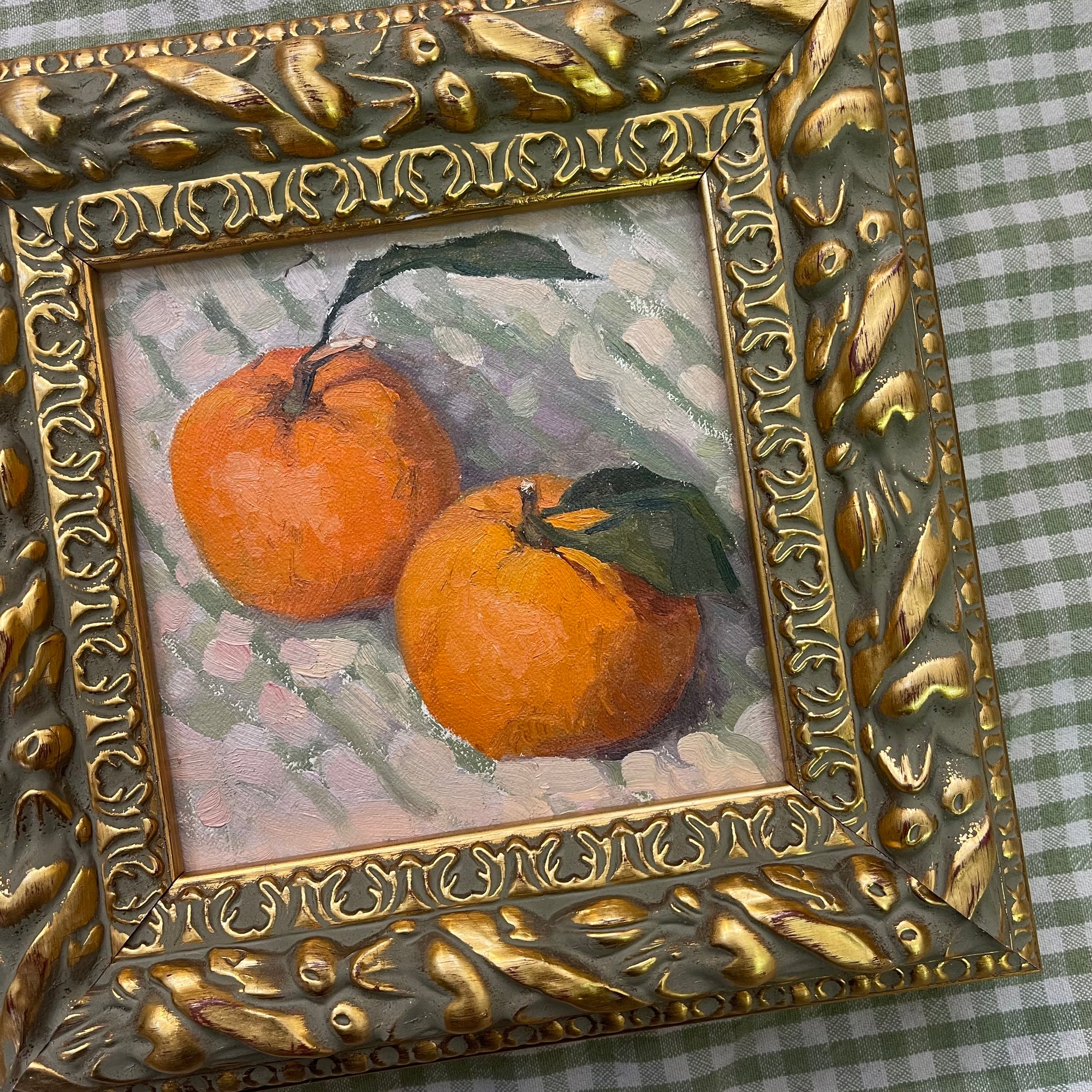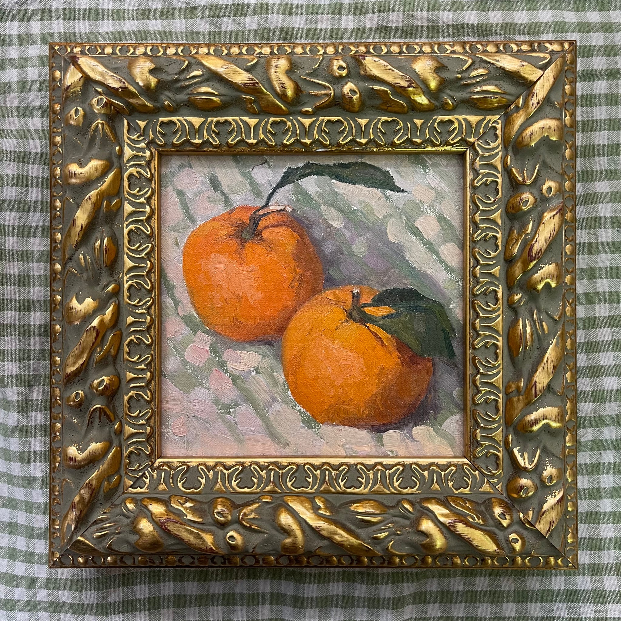 Measures 9.75 x 9.75 Oil on linen canvas panel including frame