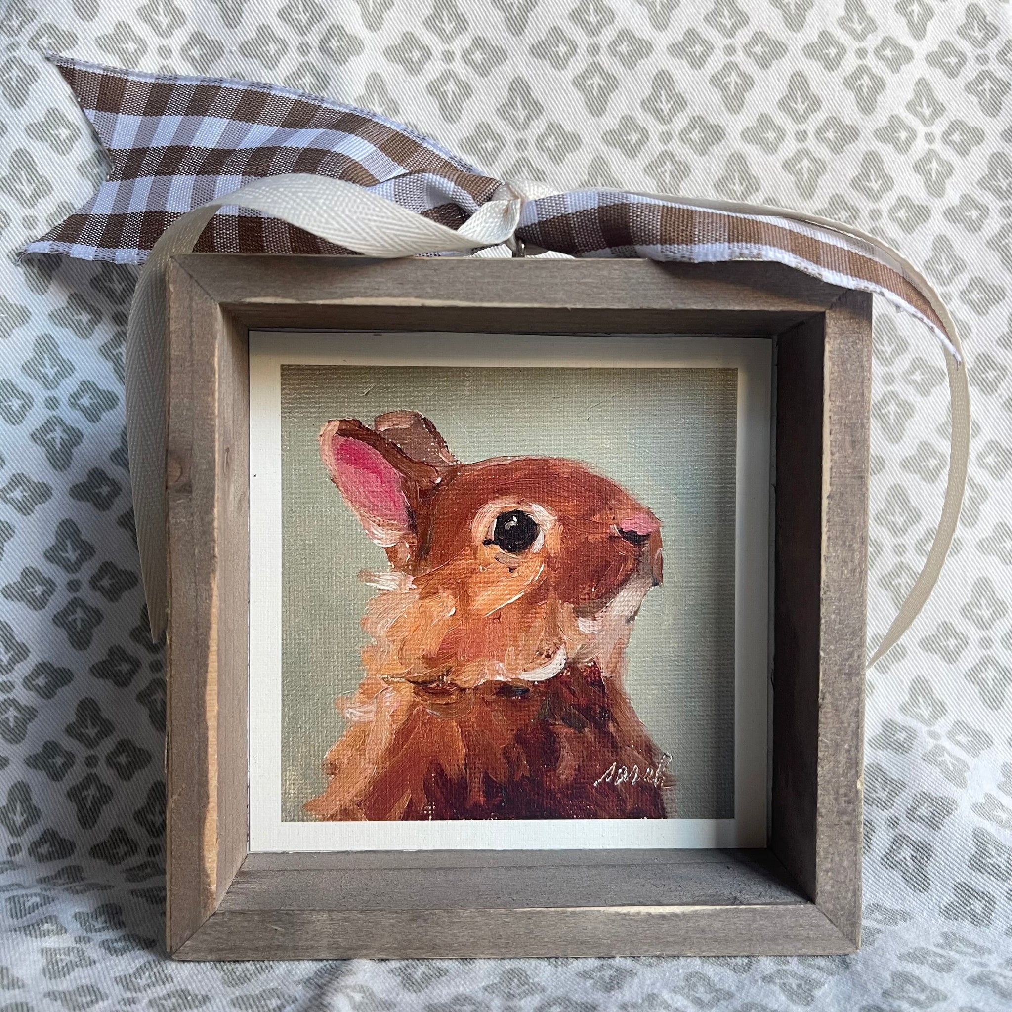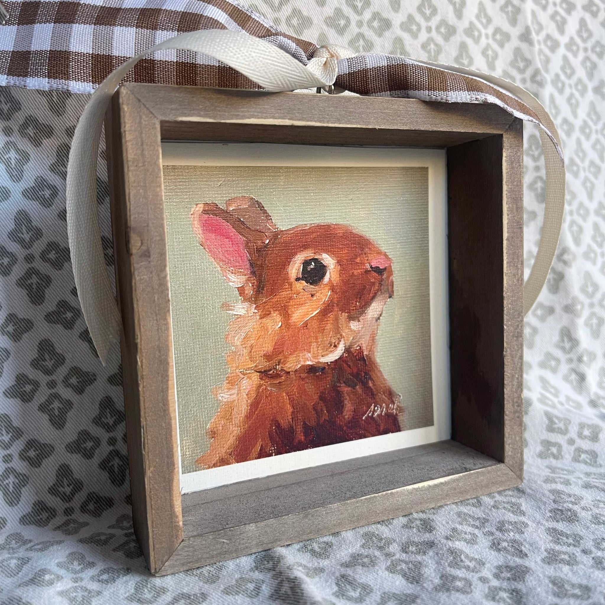 Wooden Frame measures 4.25 x 4.25 Holding a print of one of my favorite paintings from 2025. And ribbon, of course.