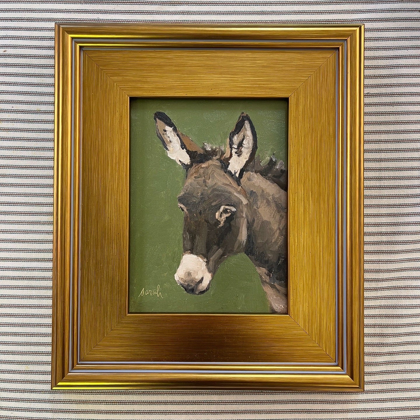 Measures 11.25x13.25 inches Oil on linen canvas panel including frame.