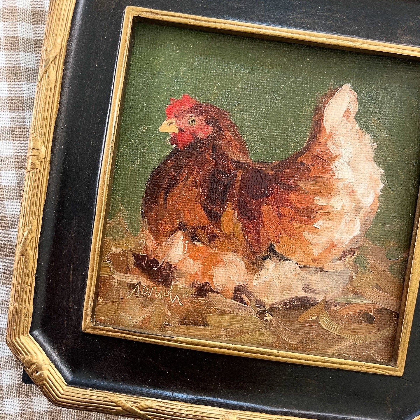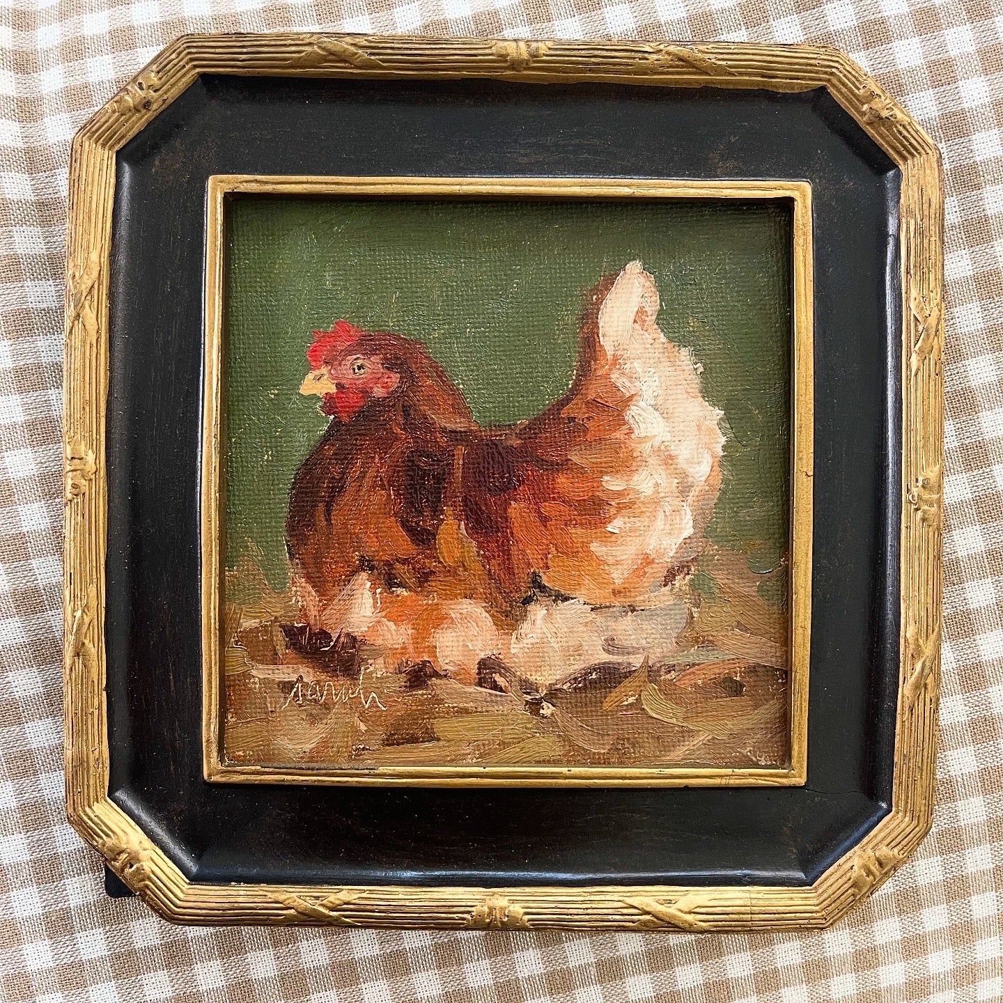 Measures 5.75x5.75 Oil on canvas panel including frame