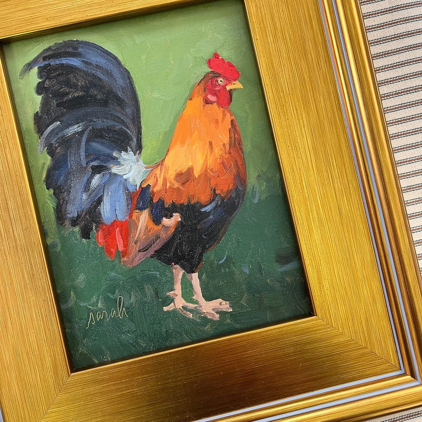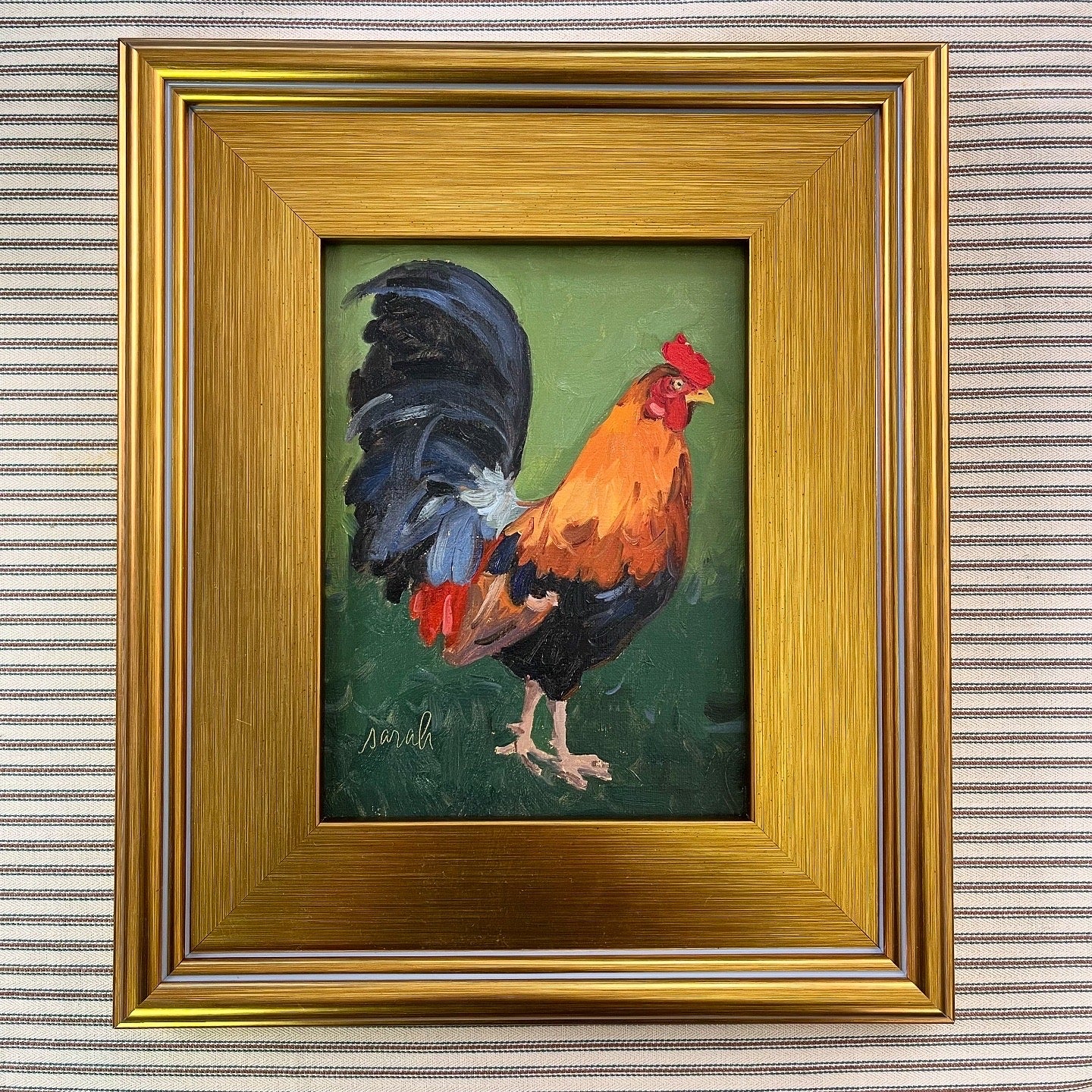 Measures 11.25x13.25 inches Oil on linen canvas panel including frame.