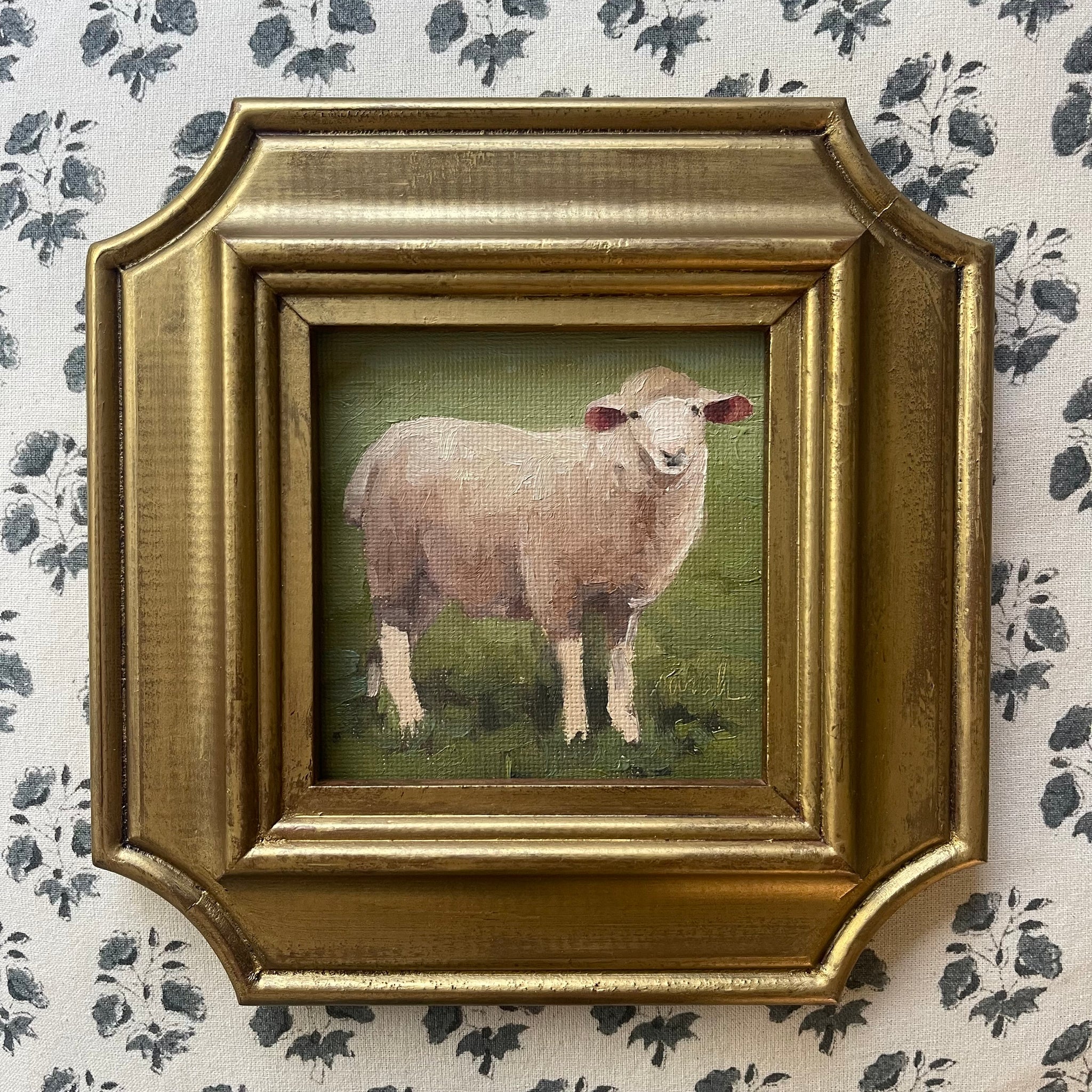 Measures 7.25 x 7.25 Oil on canvas paper including frame.