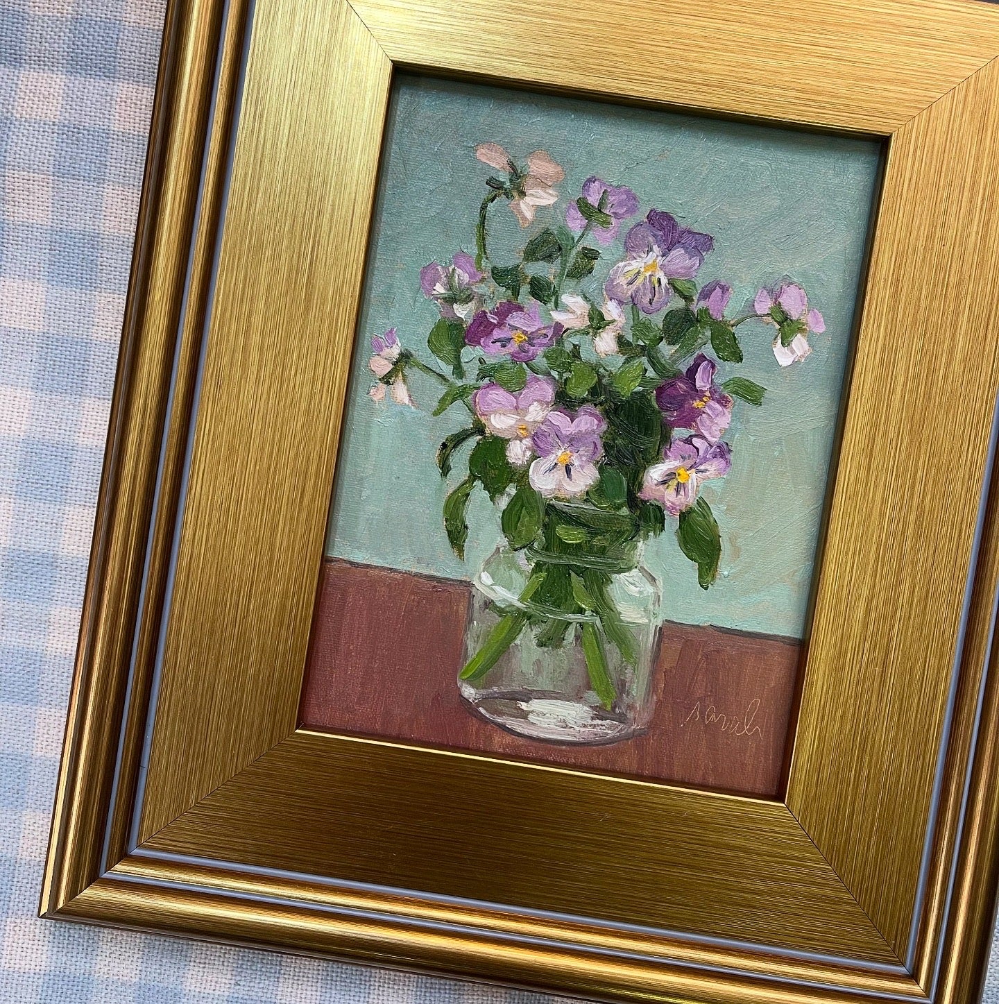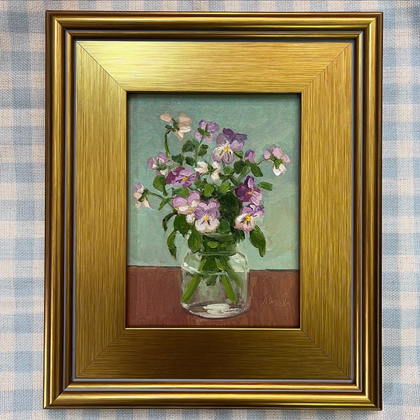 Measures 11.25x13.25 Oil on canvas including frame